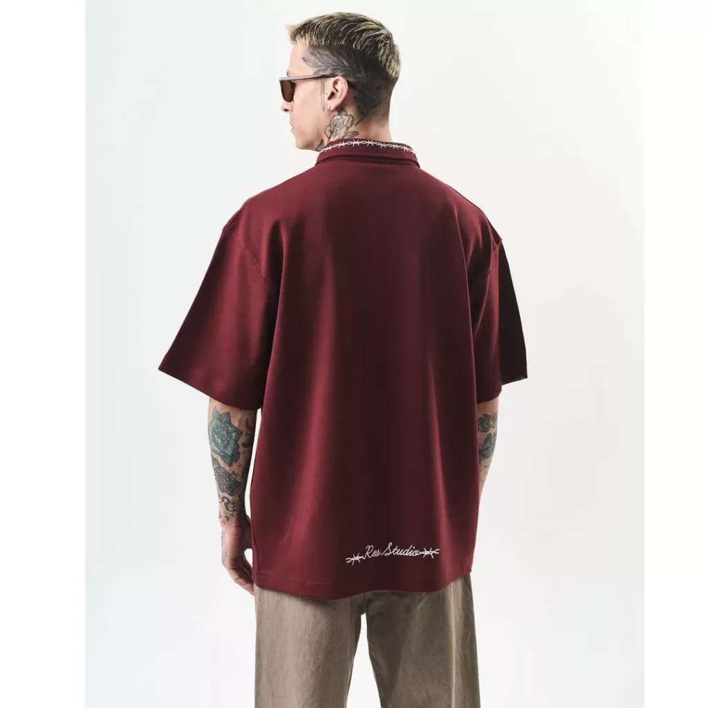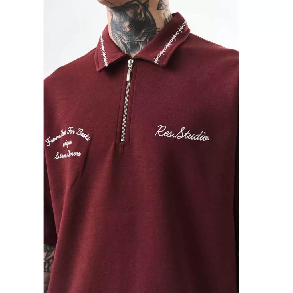 تیشرت زرشکی یقه دار دوختی برند ریسپایر